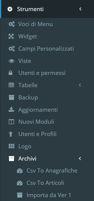 Qui potrete selezionare l’archivio da importare e, al termine dell’operazione verrete posizionati nel modulo riferito alla stessa.