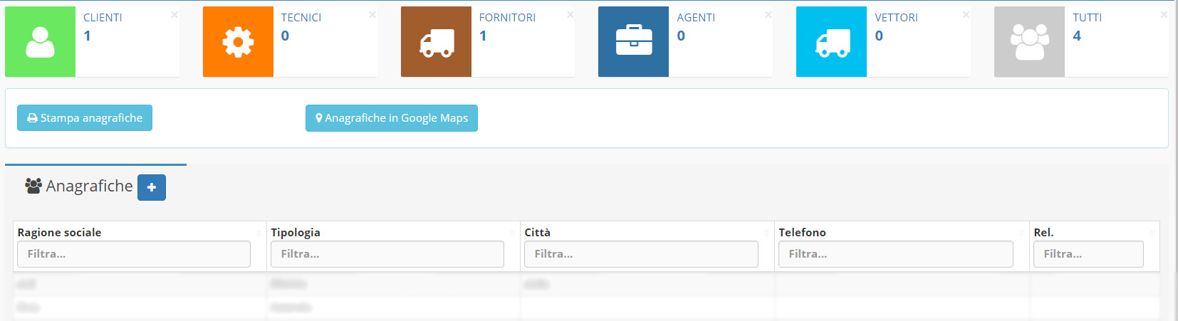Anagrafiche: tramite il menu Anagrafiche è possibile creare i filtri anagrafici.