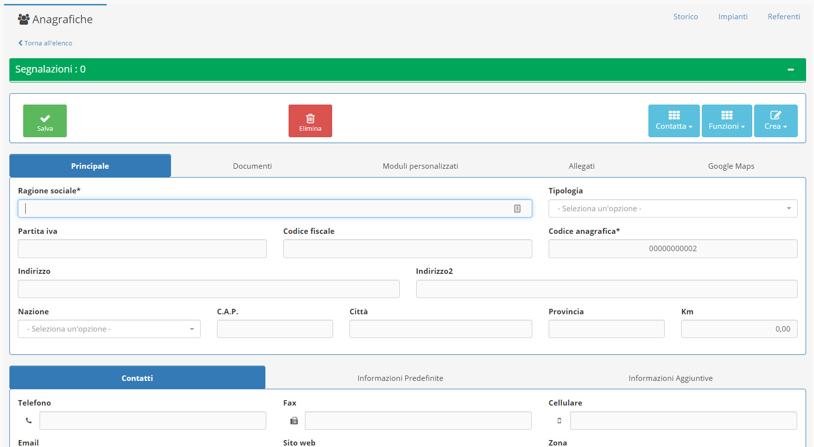 Nella schermata Anagrafiche,