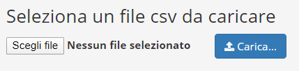 N.B. Per la corretta importazione è necessario rispettare il formato del file di esempio. Selezionate il file tramite il pulsante Scegli file e successivamente cliccare sul pulsante Carica.