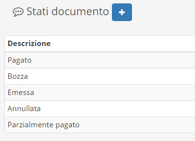 Stati documento: è possibile aggiungere e modificare gli stati impostabili per i documenti selezionando dal menu la voce Strumenti, quindi Tabelle e, successivamente, Stati documento.