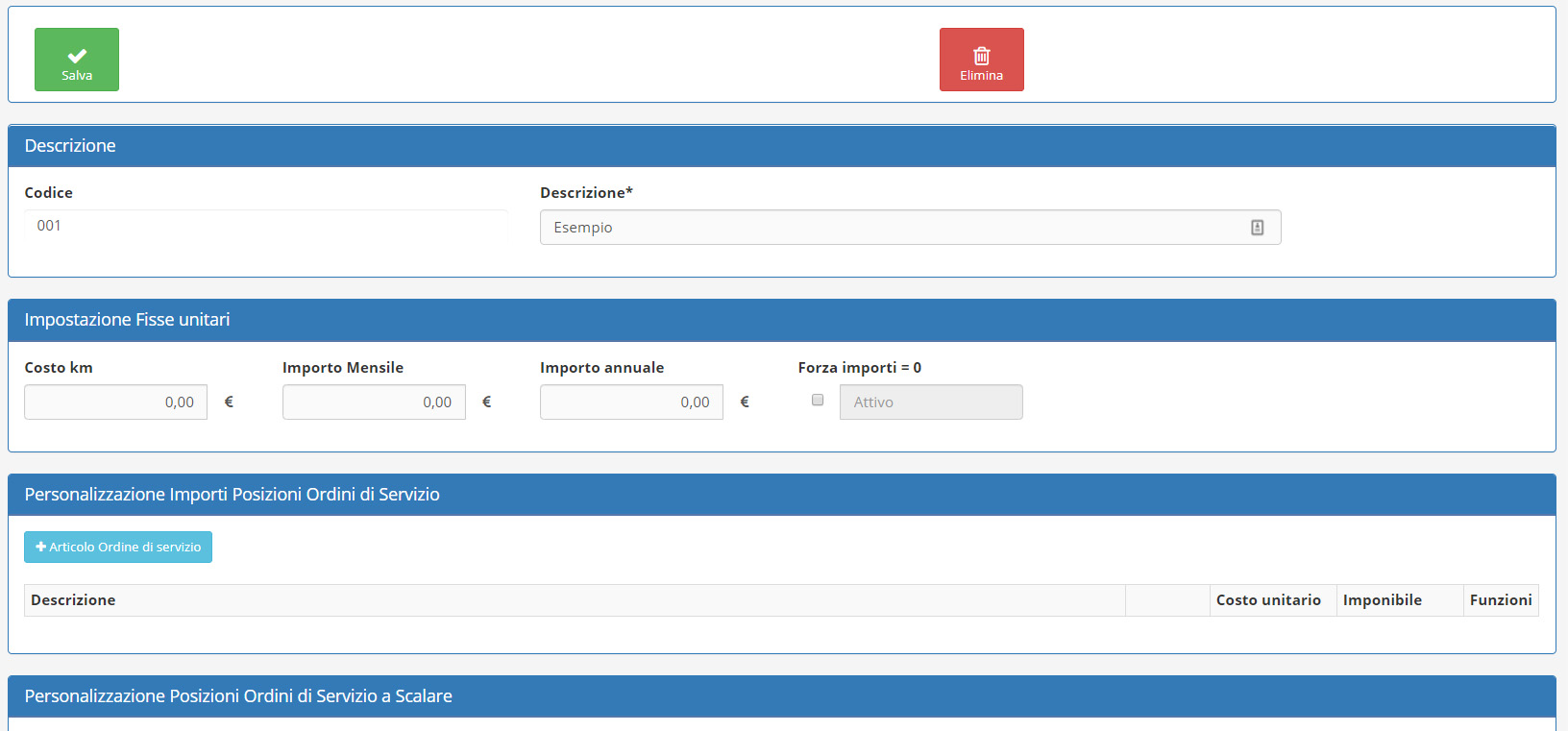 nella schermata dedicata. Una volta compilato il popup che vi si presenterà, accederete alle numerose personalizzazioni del Tipo di canone in questione.